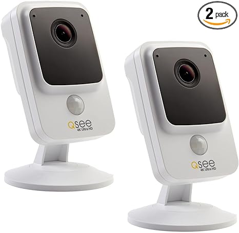 Q-See 4K Ultra HD Wi-Fi Cube Camera 2 Pack, Compatible with Alexa, Indoor, Night Vision Standalone Camera, White